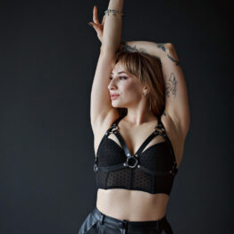 Чоловіча портупея з натуральної шкіри з двома кільцями. Об’єм регулюється за допомогою ременців.